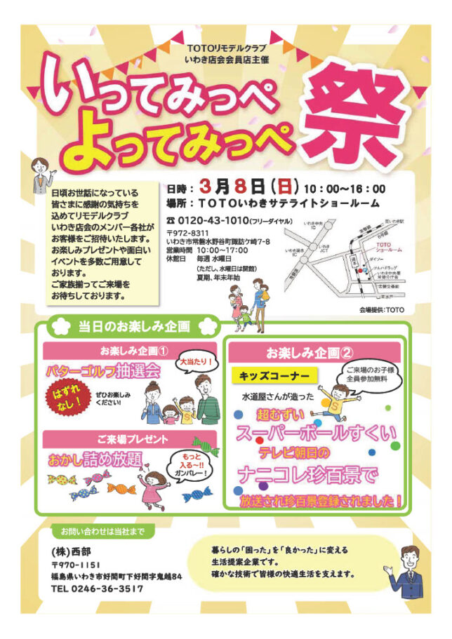 場所: TOTOいわきサテライトショールーム(いわき市常磐水野谷町諏訪ヶ崎7-8)
